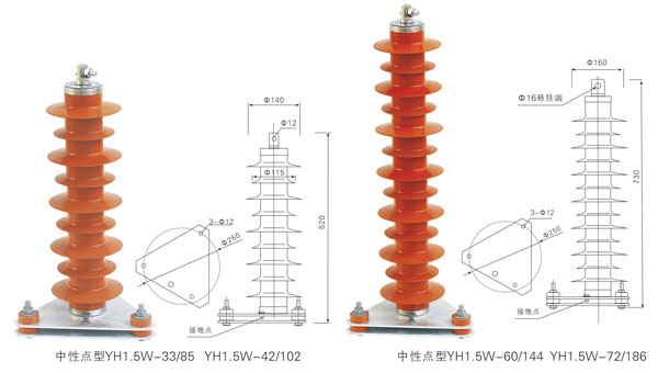 中(zhōng)性點避雷器(qì) YH1.5W-33/85  YH1.5W-42/102   YH1.5W-60/144  YH1.5W-72/186