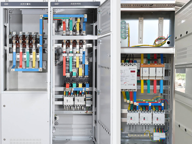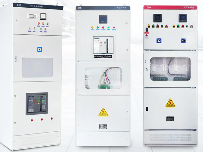 GGD光伏並網櫃(guì)光伏(fú)發電係統交流並網配電櫃適用於太陽能光伏(fú)並網發電係統,作為光伏逆變器與升壓變壓器或負載之間的電能轉換、分(fèn) 配與控製(zhì)之用, GGD 光伏(fú)並網櫃作為光伏(fú)電站的總出口存在(zài)於光伏係統中,是連接(jiē)光伏電站和電網的配電裝置,其主要作用是作為(wéi)光伏(fú)發電係統與電網的 分(fèn)界(jiè)點。對於低壓並網的光伏電站,光伏並網櫃中還可以加裝計量、保護等功能器件(jiàn)。