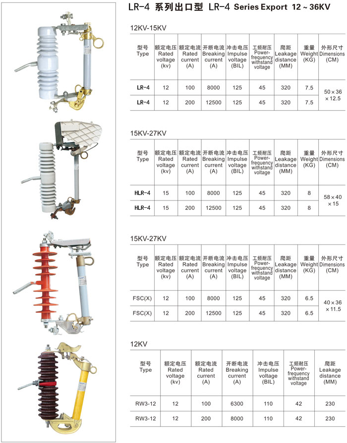LR-4係列出口型跌落式熔斷器