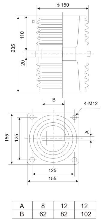 TG1-10Q/210(125×125)套管適用於額(é)定電壓(10~35)kV, 頻率(15~60)Hz的三相交流係統電(diàn)站(zhàn)和變電所配(pèi)電裝置上 ,供導電(diàn)部分穿過隔板、牆壁(bì)或其它接地物,起絕緣支持和外部導線(母線)間(jiān)固定連接之用。