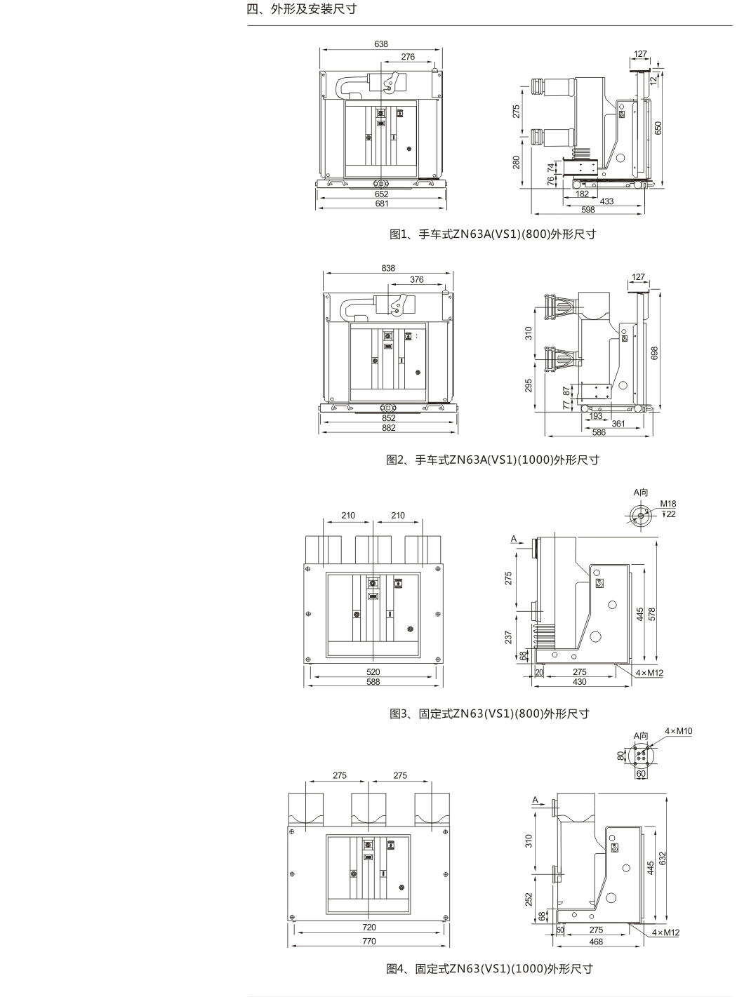 VS1係列按照安裝方式可分為固定式,側裝式,手車式。操作機構有永磁式機構,彈(dàn)簧機構等,以及普通絕筒,固(gù)封式等。