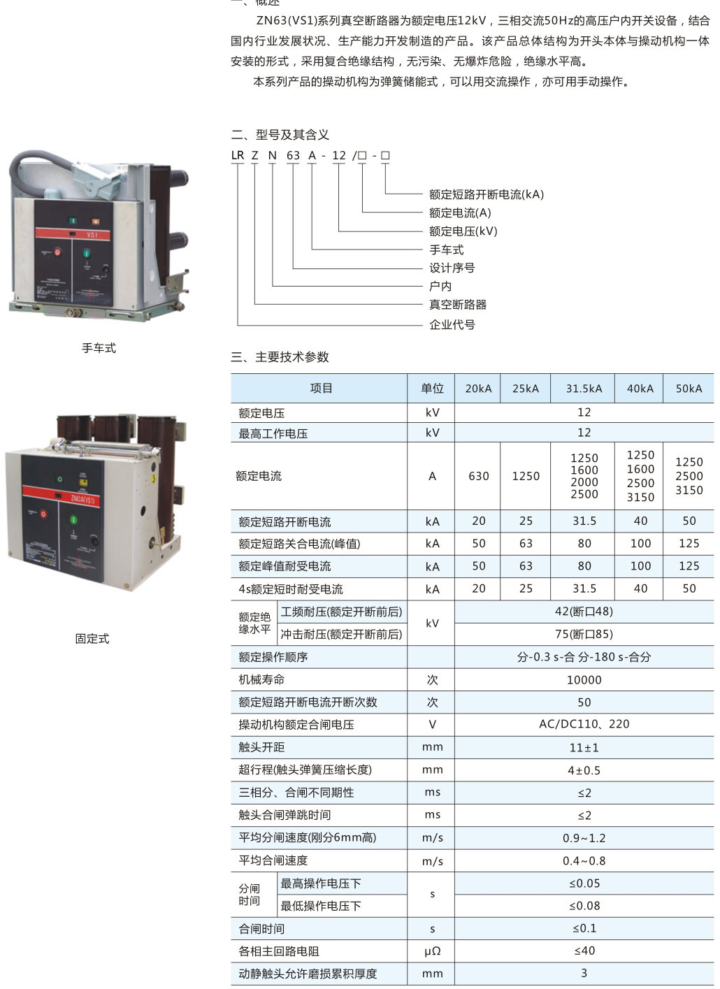 以及VS1-12/t630-20所對(duì)應的相關型號