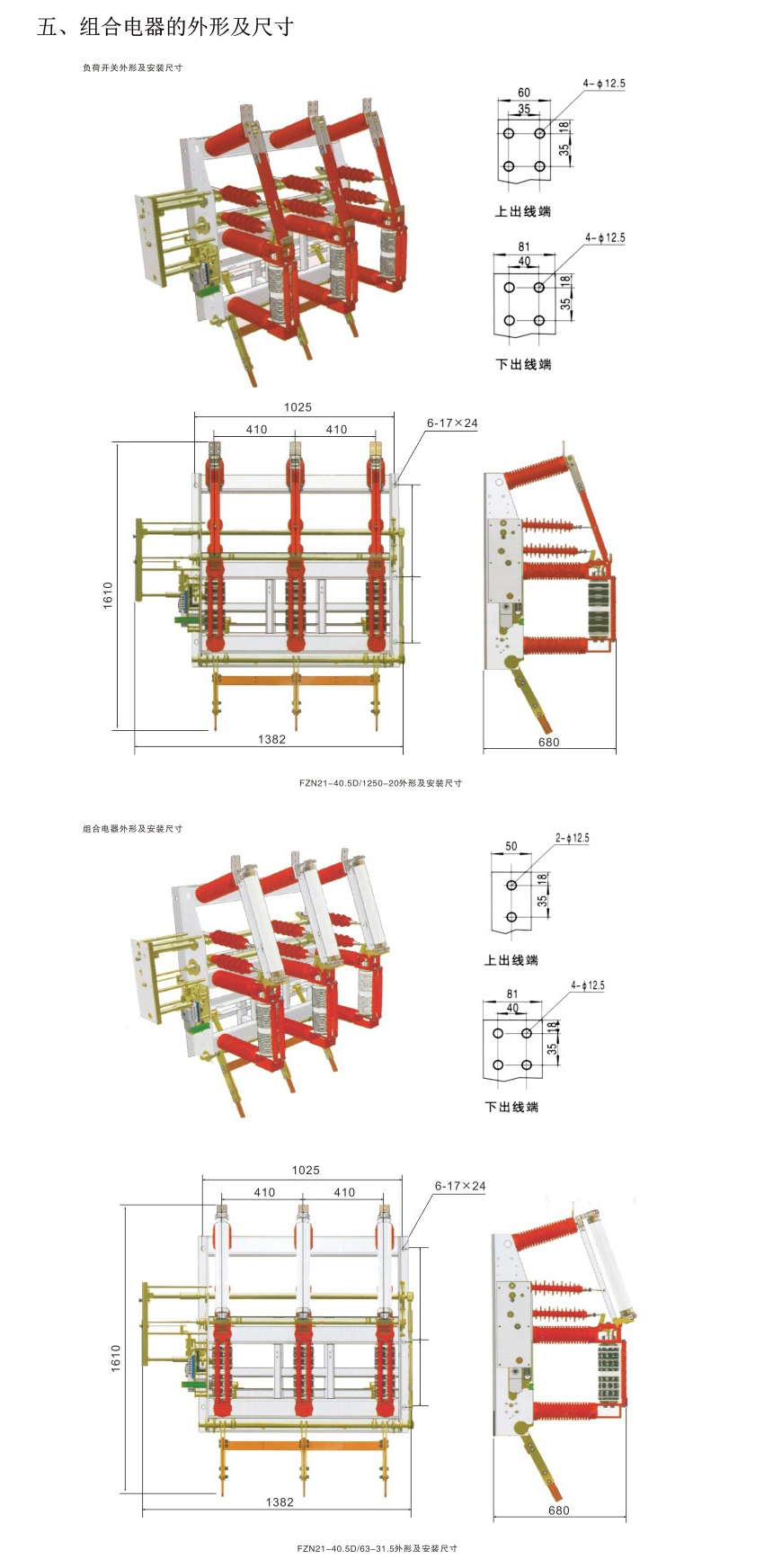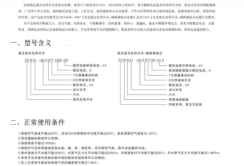 FZN21-40.5/T1250-20 戶內交流高(gāo)壓真空負荷開關 FZN21-40.5D/T1250-20 帶接地開關戶內交流高壓真空負荷開關 FZRN21-40.5/T630-31.5 戶(hù)內交流高壓真空負荷開關-熔斷器組合電器 FZRN21-40.5D/T630-31.5 帶接地開關戶內交流高壓真空(kōng)負荷開關-熔斷器組合電器 注: 真空負荷開關的絕緣子可選配帶電顯示器的傳感器(qì)。