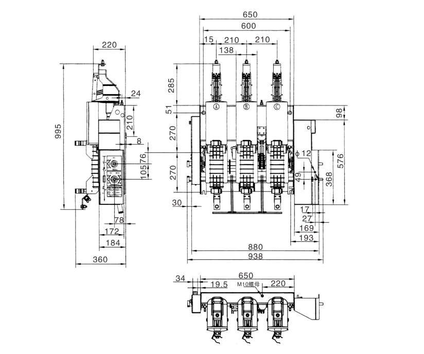 新(xīn)型側裝窄形高壓真空負荷開關,適用於交流50Hz、10kV的網路中,作為開斷負荷電(diàn)流(liú)及關合(hé)短路電流(liú)之用。帶熔斷器的負荷開關可(kě)開斷短路電流是保護變壓器的理想(xiǎng)用電設備。它特別適用於新型500寬環(huán)網供電單元和箱式變電站,能頻繁操(cāo)作。 三工(gōng)位真空(kōng)負荷開關是具有負荷、隔離、接地三功能的負荷開關,該開關具有明顯的可見斷口,使用安全。 該負荷開關由真空滅弧室承擔電路的(de)關合和分斷,真空滅弧室與隔離刀是聯動,即真空滅弧室開斷電路以(yǐ)後隔(gé)離刀立即分閘。因而,在(zài)分閘時真空滅弧室隻承受瞬態恢複電壓,分閘後由隔離斷口承擔工頻和衝(chōng)擊電壓。 將(jiāng)處於分閘狀態的(de)負荷開(kāi)關的手柄反時針轉動時就驅動隔離刀向關合方向運(yùn)動,同時,也給合閘彈簧儲能。當隔離刀關合到(dào)位,合(hé)閘(zhá)彈簧儲能過中(zhōng)真空滅(miè)弧室在過中簧的帶動下快速關合。從而實(shí)現負荷開關的關合過程。