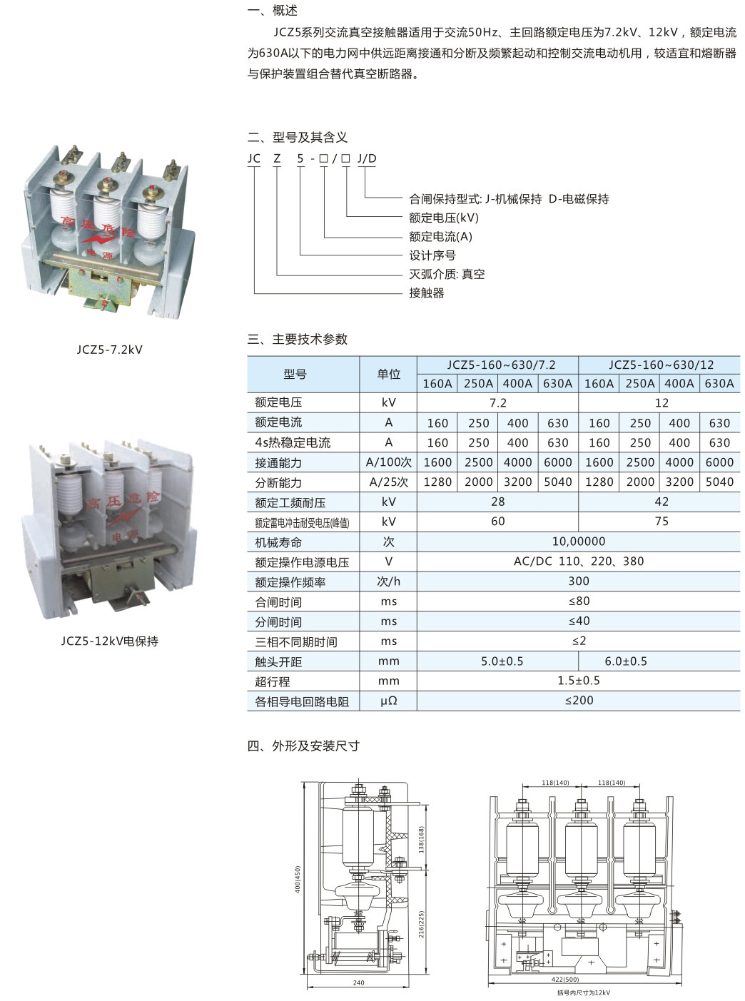 • JCZ5-7.2KV,JCZ5-12KV交流(liú)高壓真空接觸器