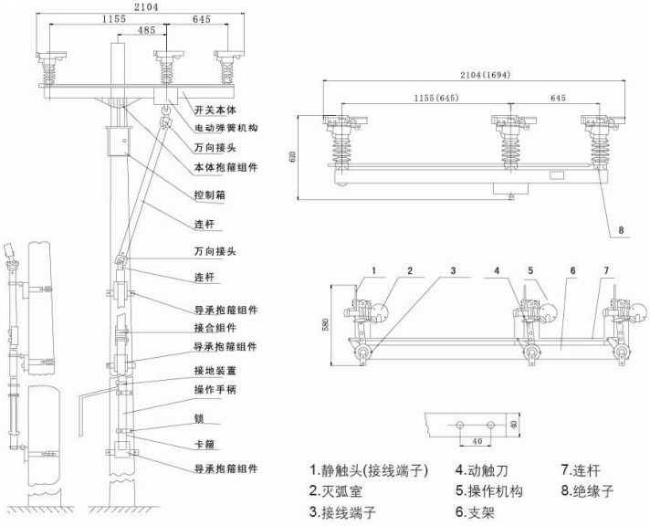該開關適用於額定電壓12kV以下、額定頻率(lǜ)50Hz的戶(hù)外三相交流電力配電係統切合負荷電流用。在分(fèn)閘位置能滿足對隔離開關規定(dìng)的隔離要求。